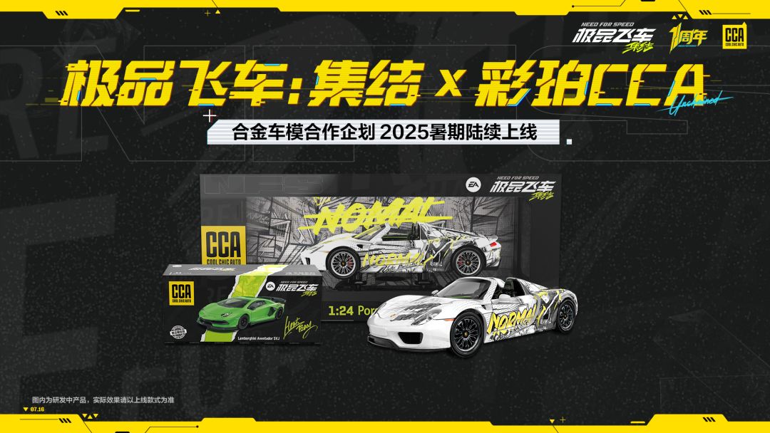 《极品飞车:集结》携手知名车模品牌CCA开启重磅合作!游戏内的人气赛车与涂装将突破次元壁,以合金车模的形式实体化呈现。联名企划将于今年暑期陆续上线,后续还有更多惊喜等待解锁~