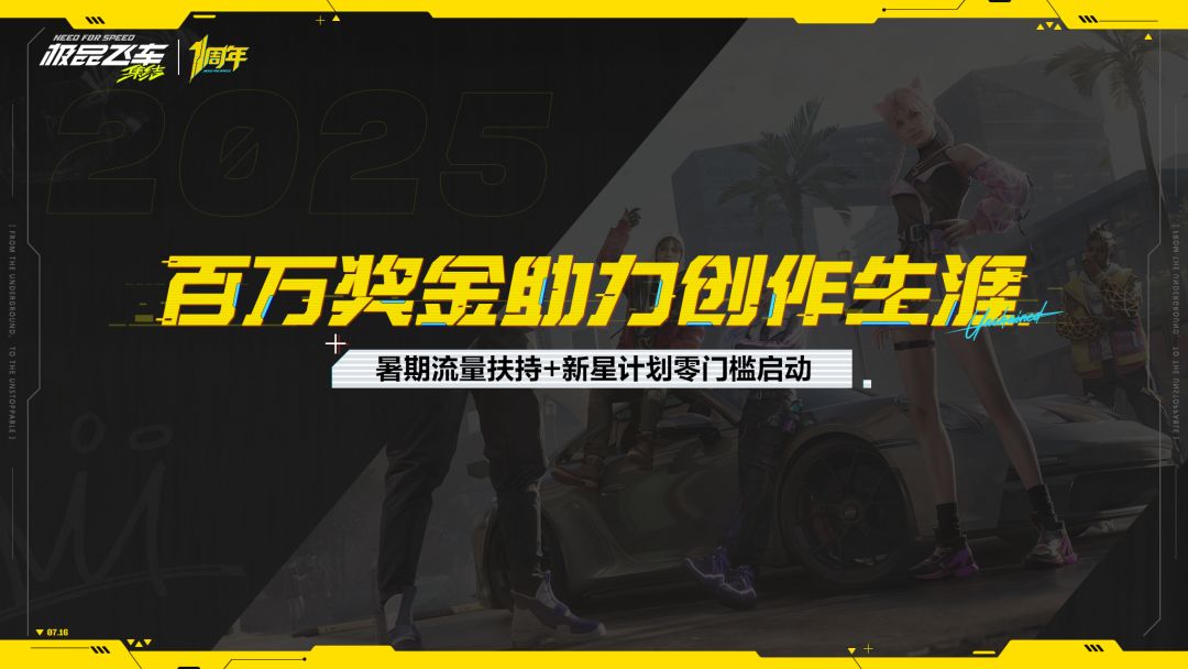 为致谢每一位为爱发电的街头赛车手,《极品飞车:集结》携百万级别的创作奖金强势来袭。这个暑期更有专项流量扶持政策与新星计划同步启动,无论你是二创老手还是零经验小白,都能轻松开启创作生涯,让每个灵感火花都有机会绽放光彩!