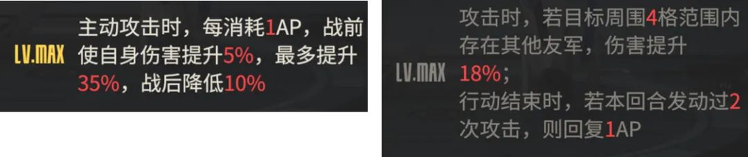接着便是多个不屈的效果......只要场上有多个“任命”状态友方的话,科林是可以单回合内多次触发不屈效果的,不过要是遇上了会协力攻击的敌人,那么就不太好搞了.......不过不管怎么讲,这个多次不屈的效果也给了科林在特定场合下不错的生存能力,甚至我们都可以利用这个效果来达到某些类似于凯瑟琳的战术价值,后续值得一探究竟。