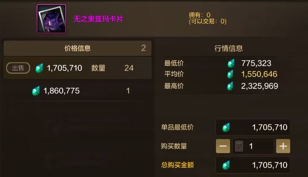 这应该算手游开服以来最贵的拍卖行道具了,可惜当初俺250万就卖出去了!“降临奥兹玛”有概率产出无之奥兹玛卡、王子卡、公主卡等。