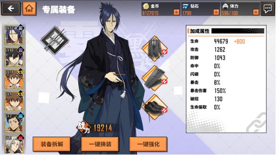 所有角色都有3个通用的装备:护具、头饰和鞋子,每个角色还有一个独有的专属武器。