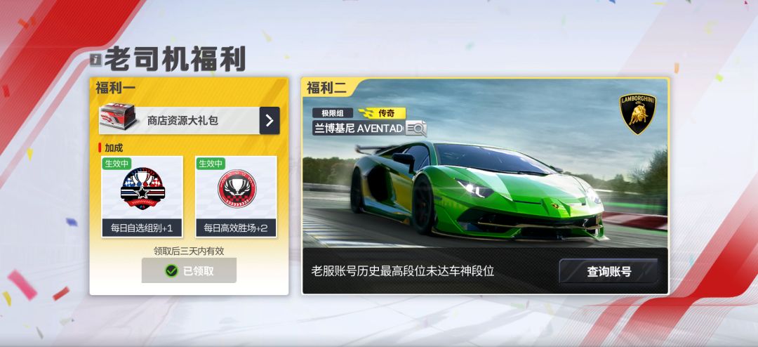 并且在新服开启的首个赛季,所有老玩家(创角超过14天)在其他服务器曾经达到过车神段位后,来新服首赛季还立送兰博基尼 Aventador SVJ!这样一来,就是总计15台传奇车辆直接配置到位!(菜菜小可打不上车神段位,求车手哥哥们带带~😘)