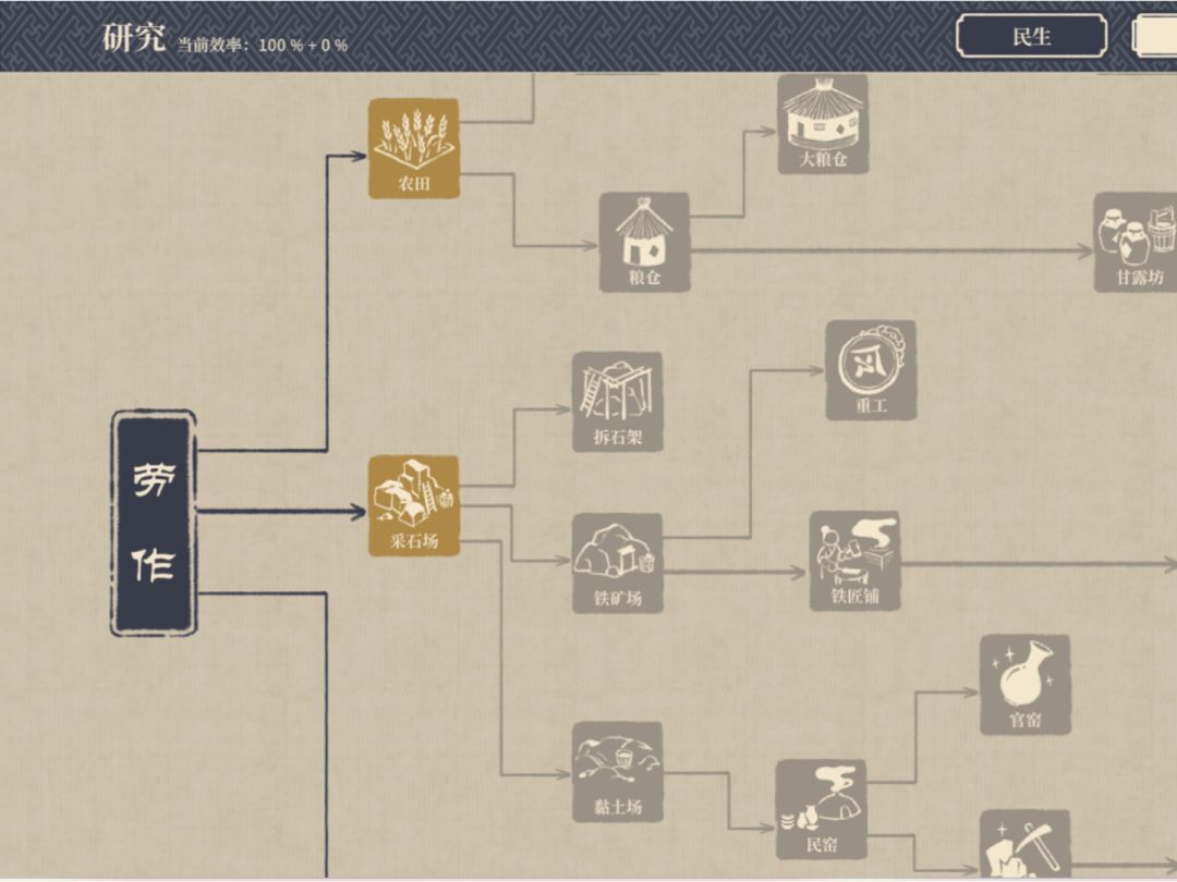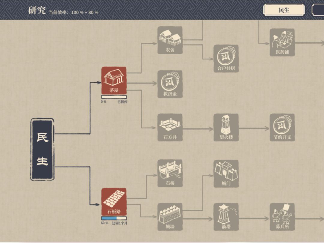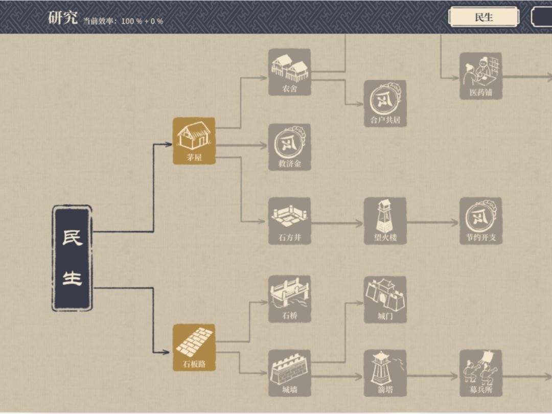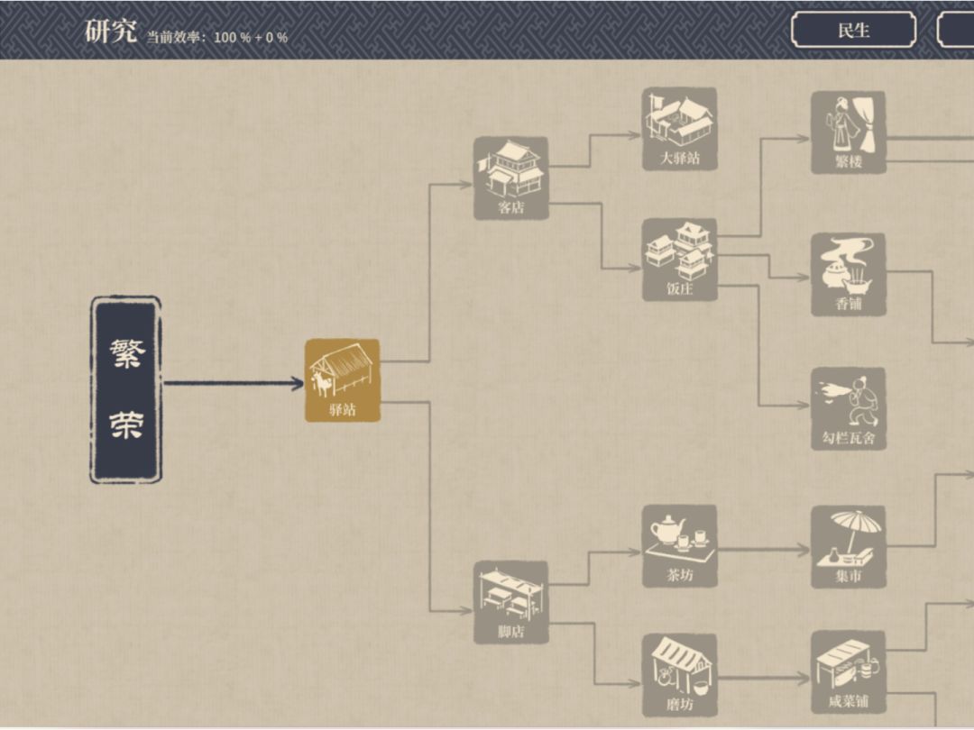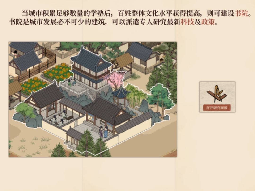 当城镇的文化得到发展,并建立书院后,玩家可以开启“研究”系统。