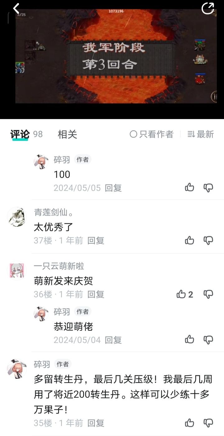 像司马懿、浮生等主力吃转生丹之后属性都会翻倍,偶尔用一下还是可以的(参考文献25),但作为常规战术可能不行,毕竟每周目几十关,转生丹也就10个左右。
