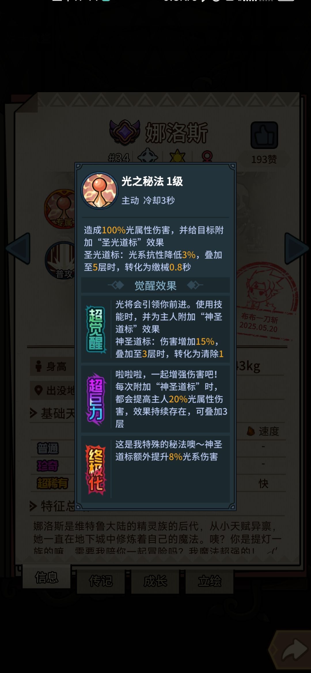 光系还有另一只宠物麋鹿三觉时,还可以一用,30%攻速、50光伤、50%爆伤,在娜洛斯未觉醒前可以作为替代。