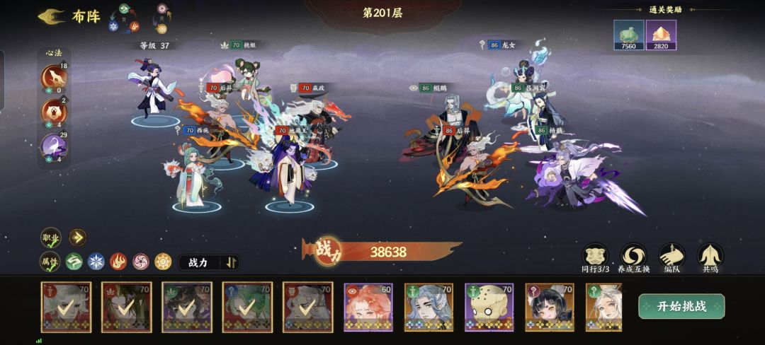今天过了200层了,无脑双奶平推,三星地藏王西施加新手奶,夹击单体点杀