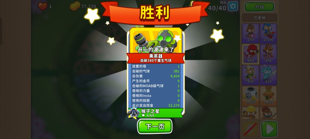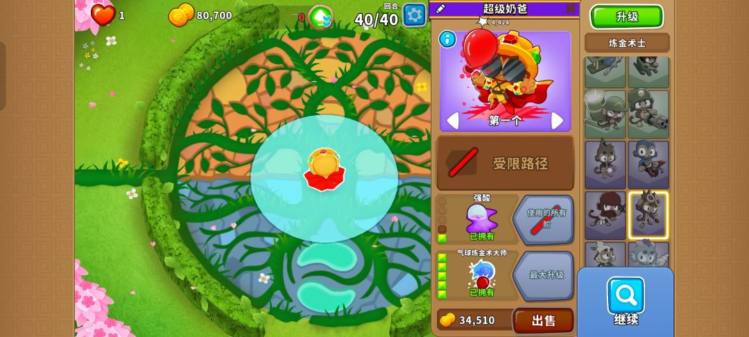 可以用回旋镖、王牌飞行员、迫击炮猴、直升机飞行员、冰猴、超猴侠、炼金术师、忍者猴和工程师猴通过!