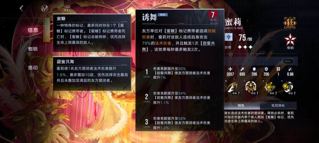 大招给生命值最高的敌人添加【蜜糖】标记,且目标死亡会自动转移