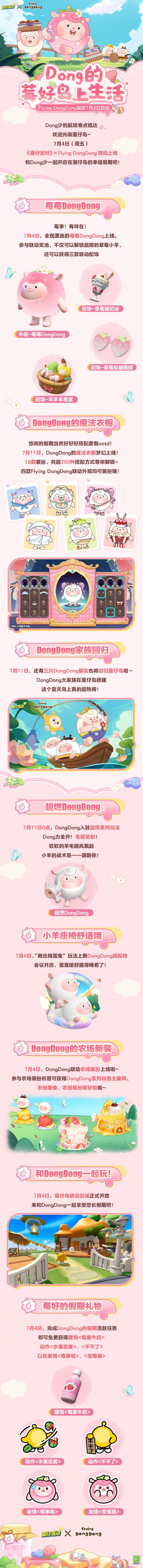 7月4日(周五),《蛋仔派对》× Flying DongDong联动开启!莓莓DongDong、DongDong的魔法衣橱、DongDong家族返场...