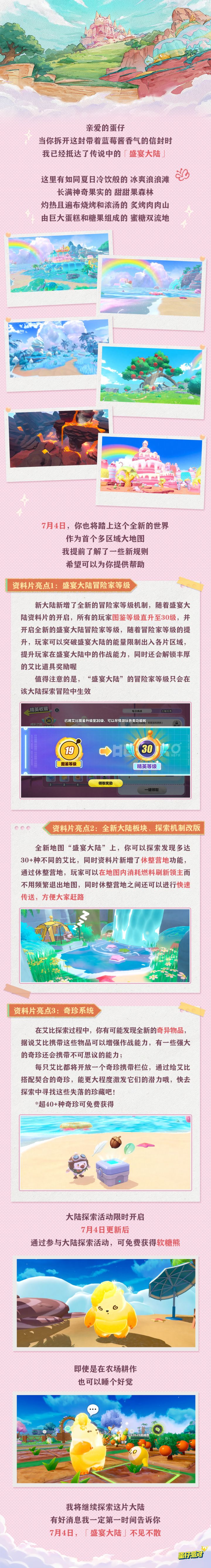 除此之外,大陆探索活动也将在7月4日更新后限时开启,完成活跃任务即可免费获得稀有艾比「软糖熊」,橘子味的小熊在梦中也会派发给蛋仔的甜蜜糖果噢~