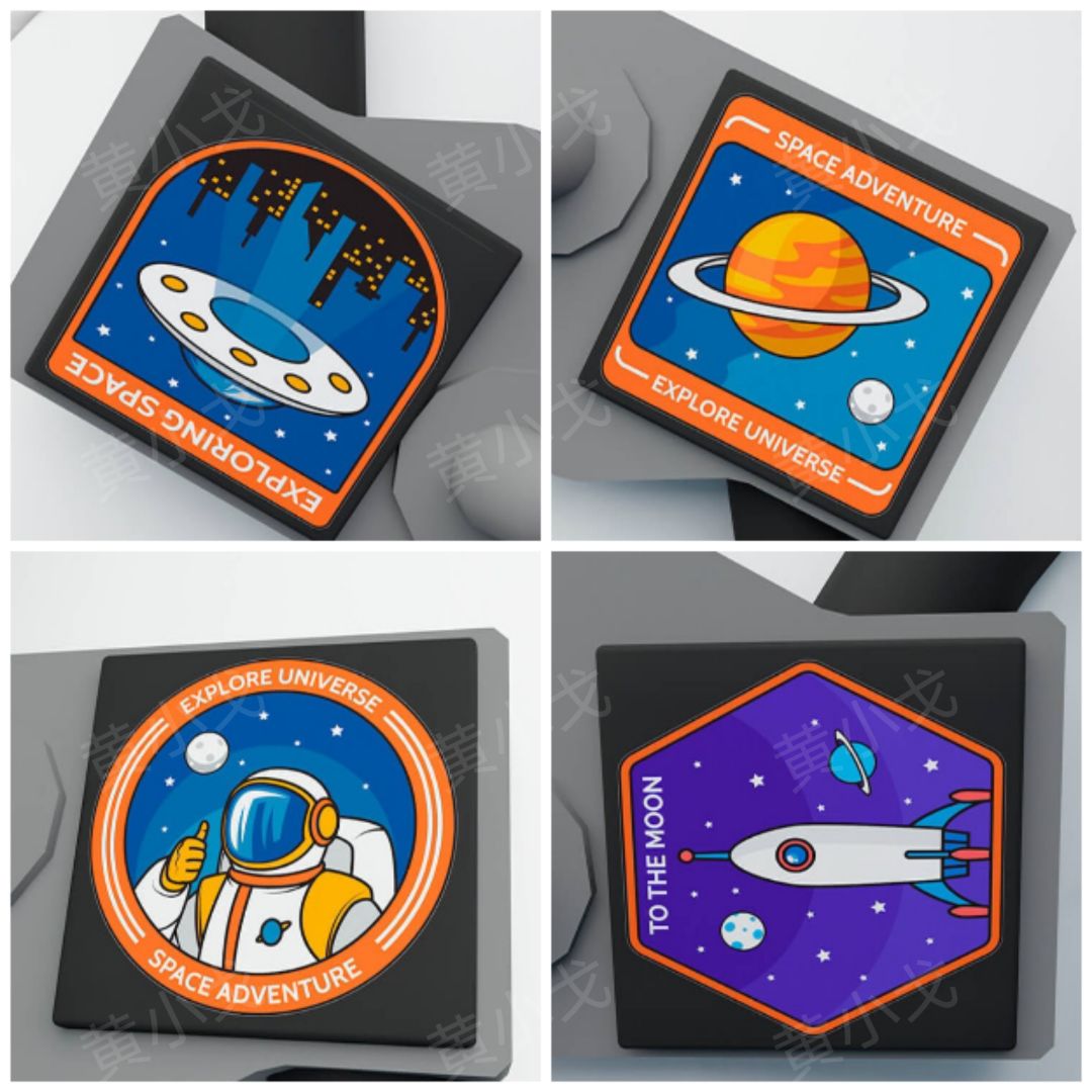 🔶[宇航员]场景宇航员徽章上的图案及徽章形状线索:宇航员-圆形、星球-正方形、飞船-半椭圆、火箭-六边形