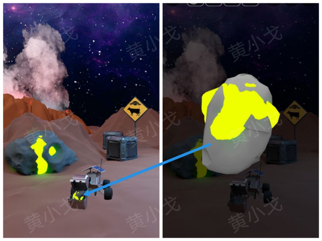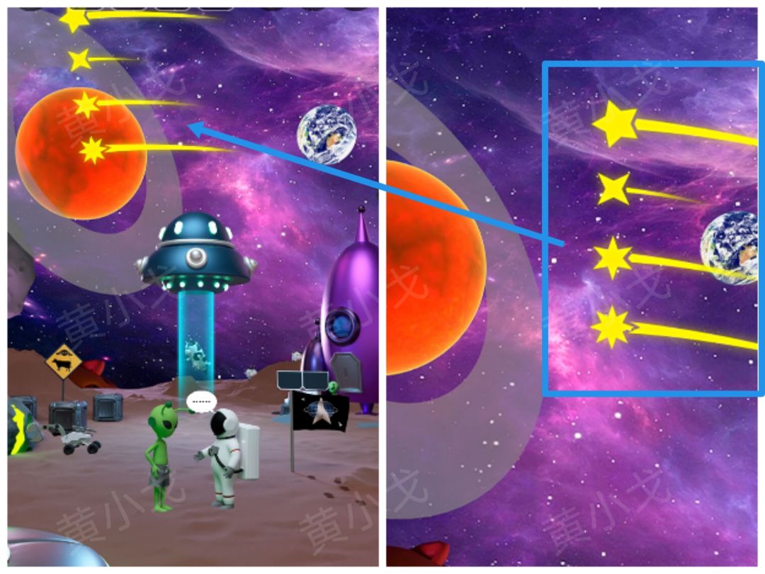 2.点击地上的左侧箱子上的密码锁,根据上面的流星图案提示,结合天空中划过的流星尾巴长度线索,调整密码锁