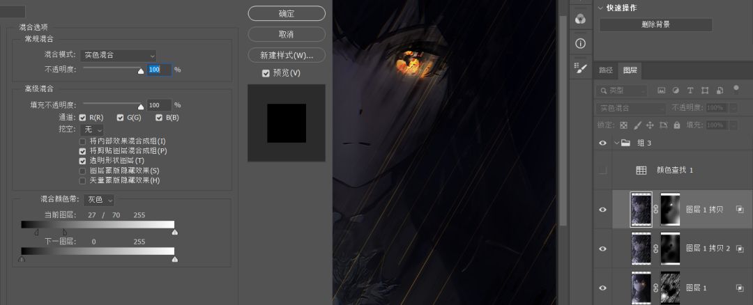 3.复制>混合颜色带不变>叠加