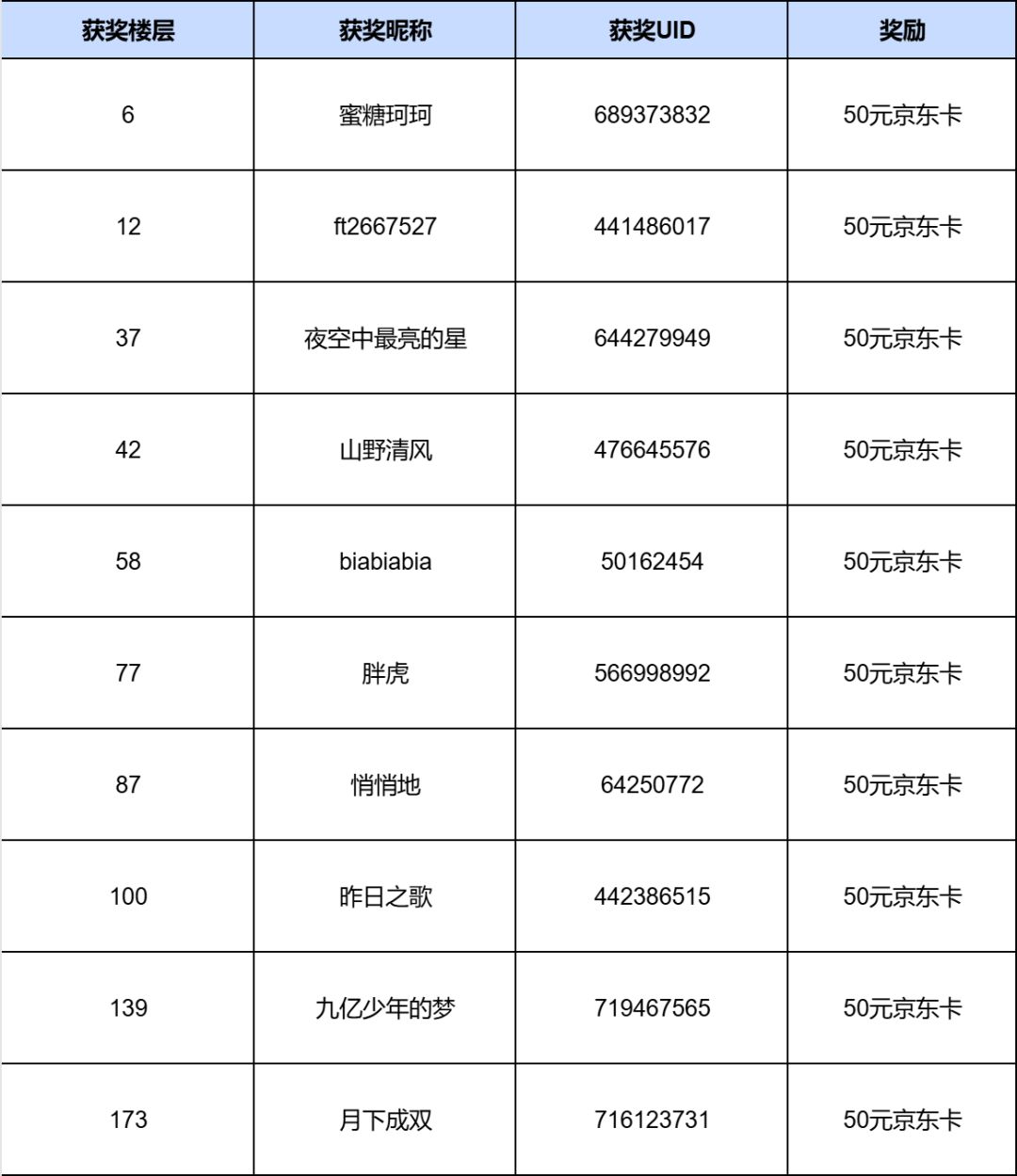 感谢大家的积极参与!恭喜以下玩家获得奖励。
