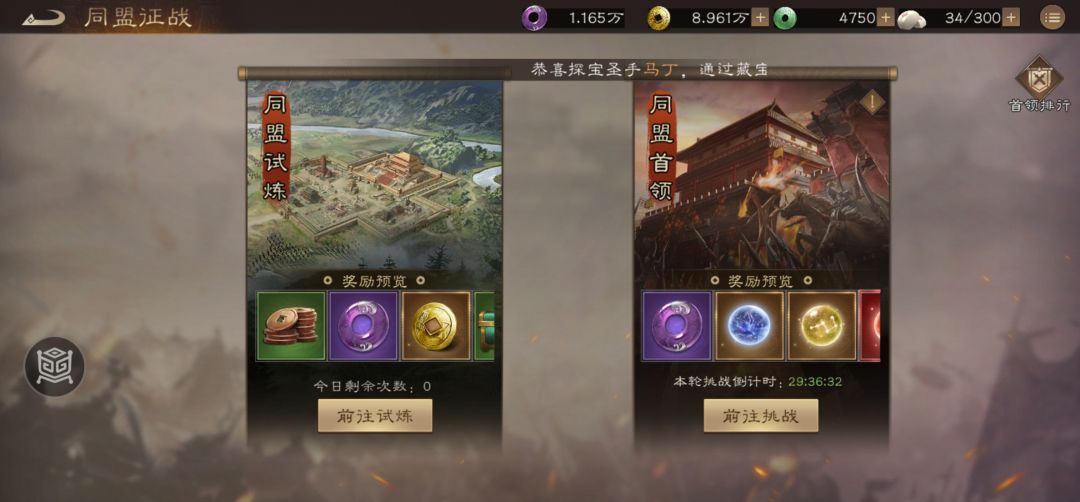 同盟试炼:这个玩法比较简单粗暴,每天每个队员有5次机会参加,一般打一次另外4次直接扫荡即可,大家一起使劲,完成进度越快获得奖励越多。