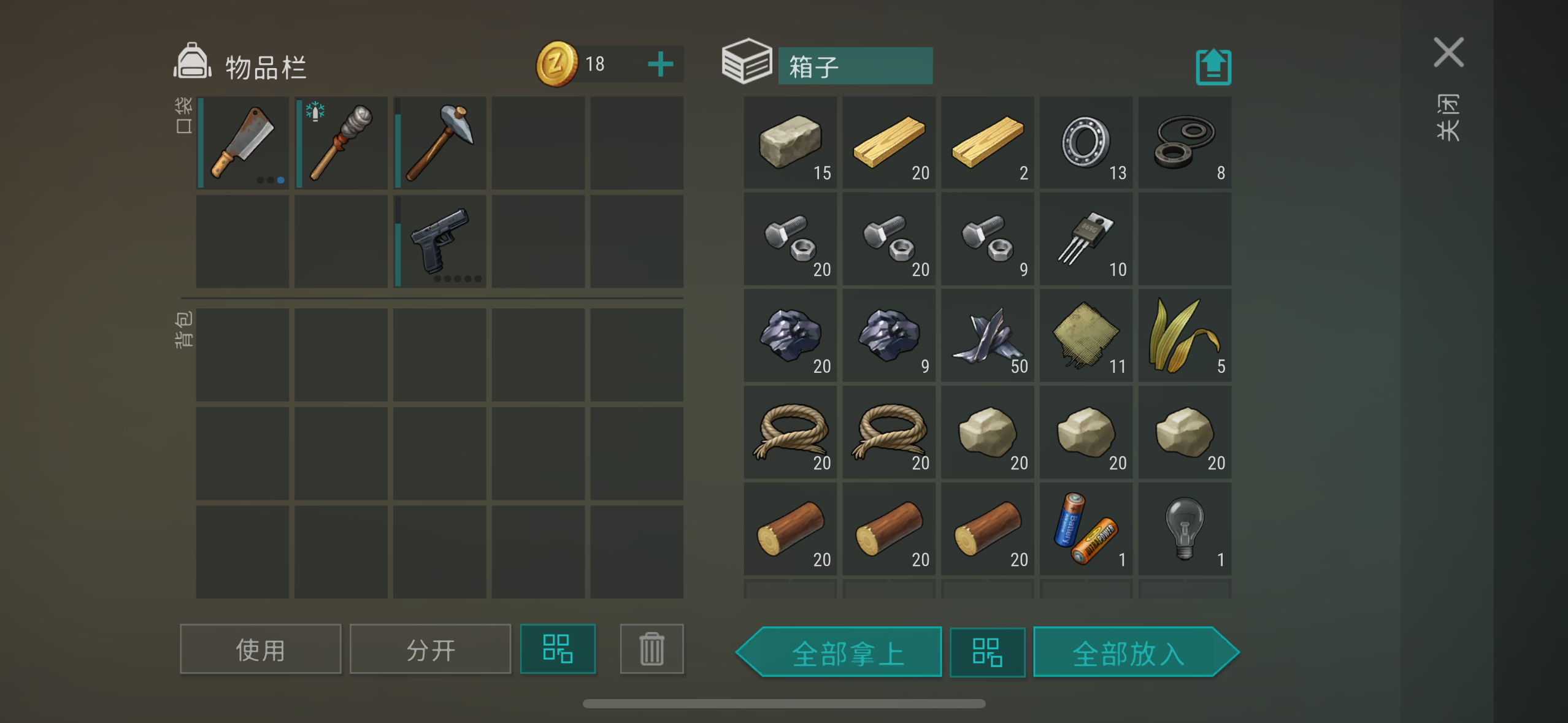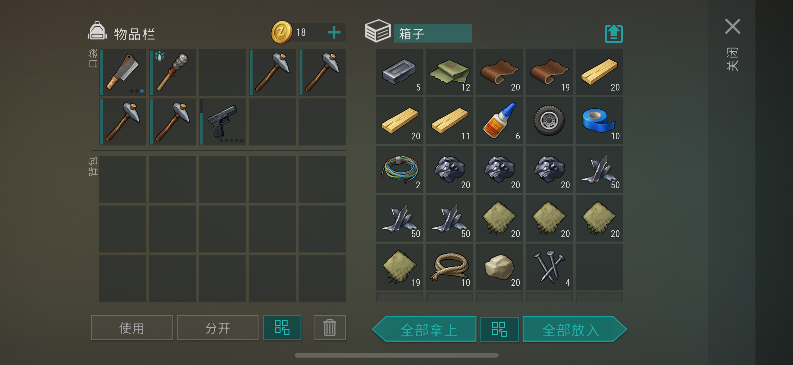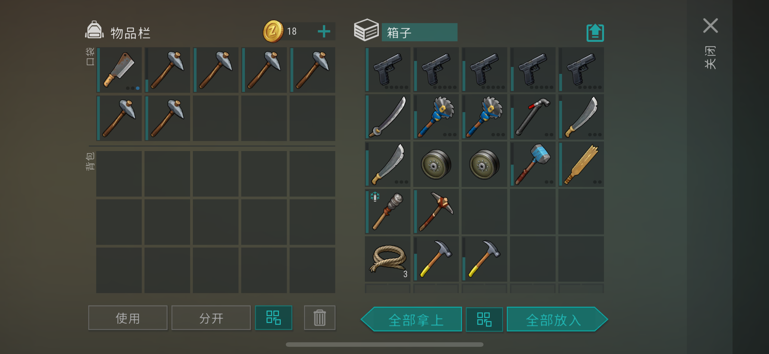 有五把手枪,可以卡箱子。
