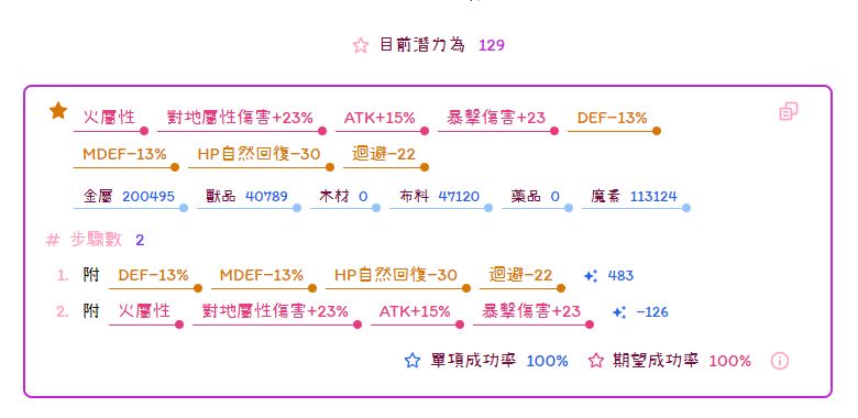 蕾丝:最具性价比也是不考虑命中最强的方案,7%atk8%拔伤6%dex看似数值不够,但都吃满也相当可观。