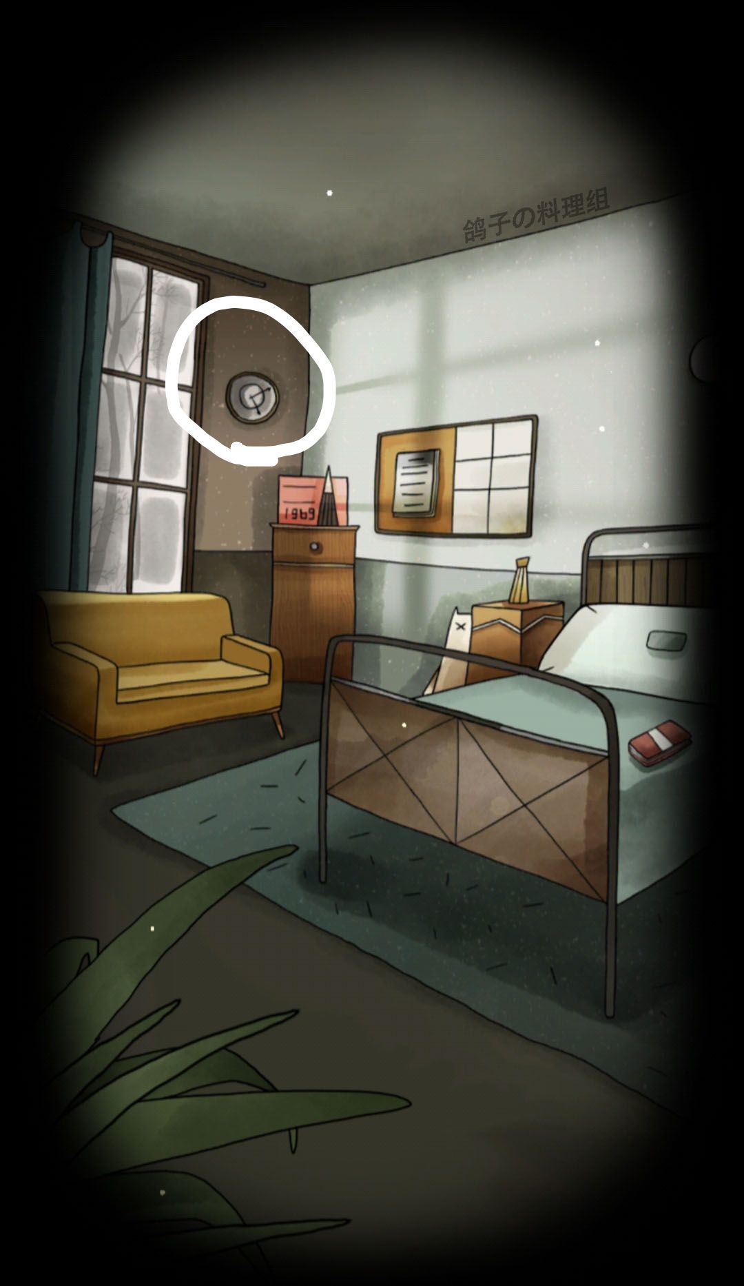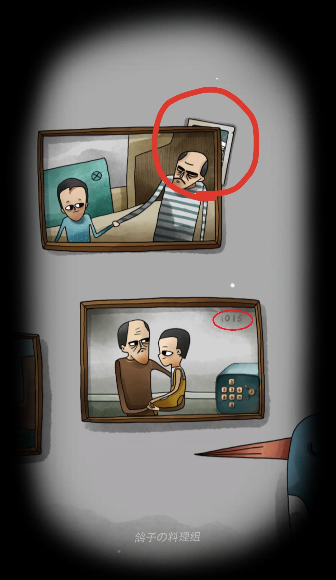 下图红圈中的数字1015,这是保险箱的密码,上面照片框背后的照片是收集的4/28个物品。