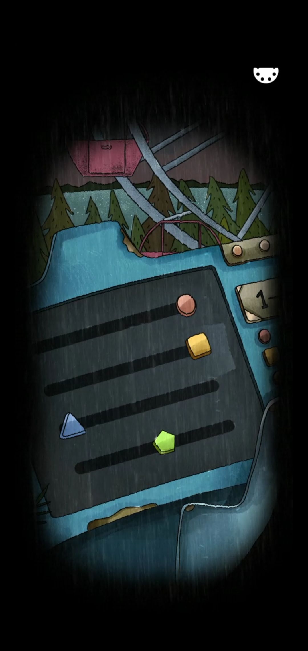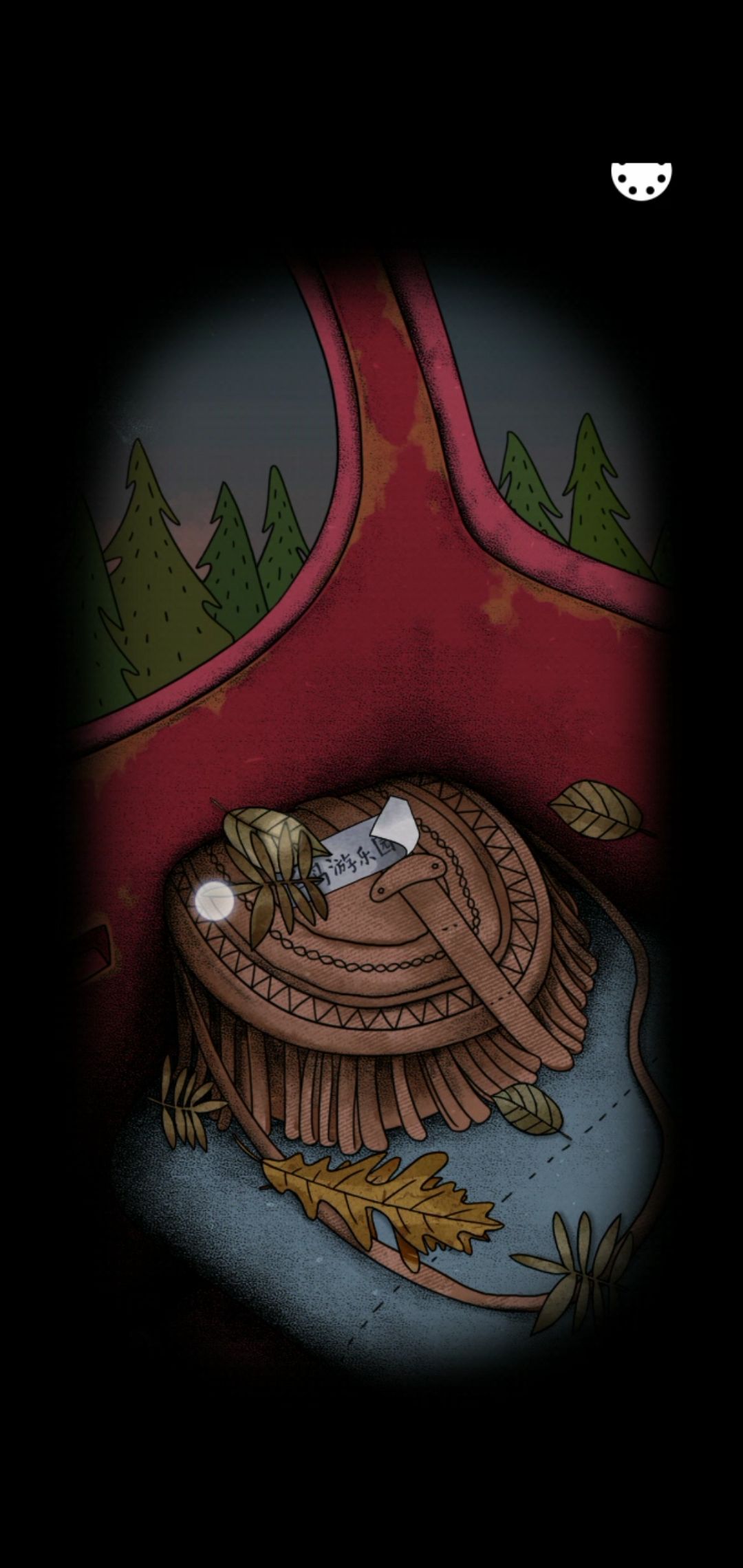 成功发动车子之后会有一段动画,动画结束后会出现下面左图这个画面,先摇一下右侧的松树,得到松果3/28,此时点击房顶的白鸟,让它飞走,就会出现“白鸟游乐园”这几个字,这时候就可以进入第二章。