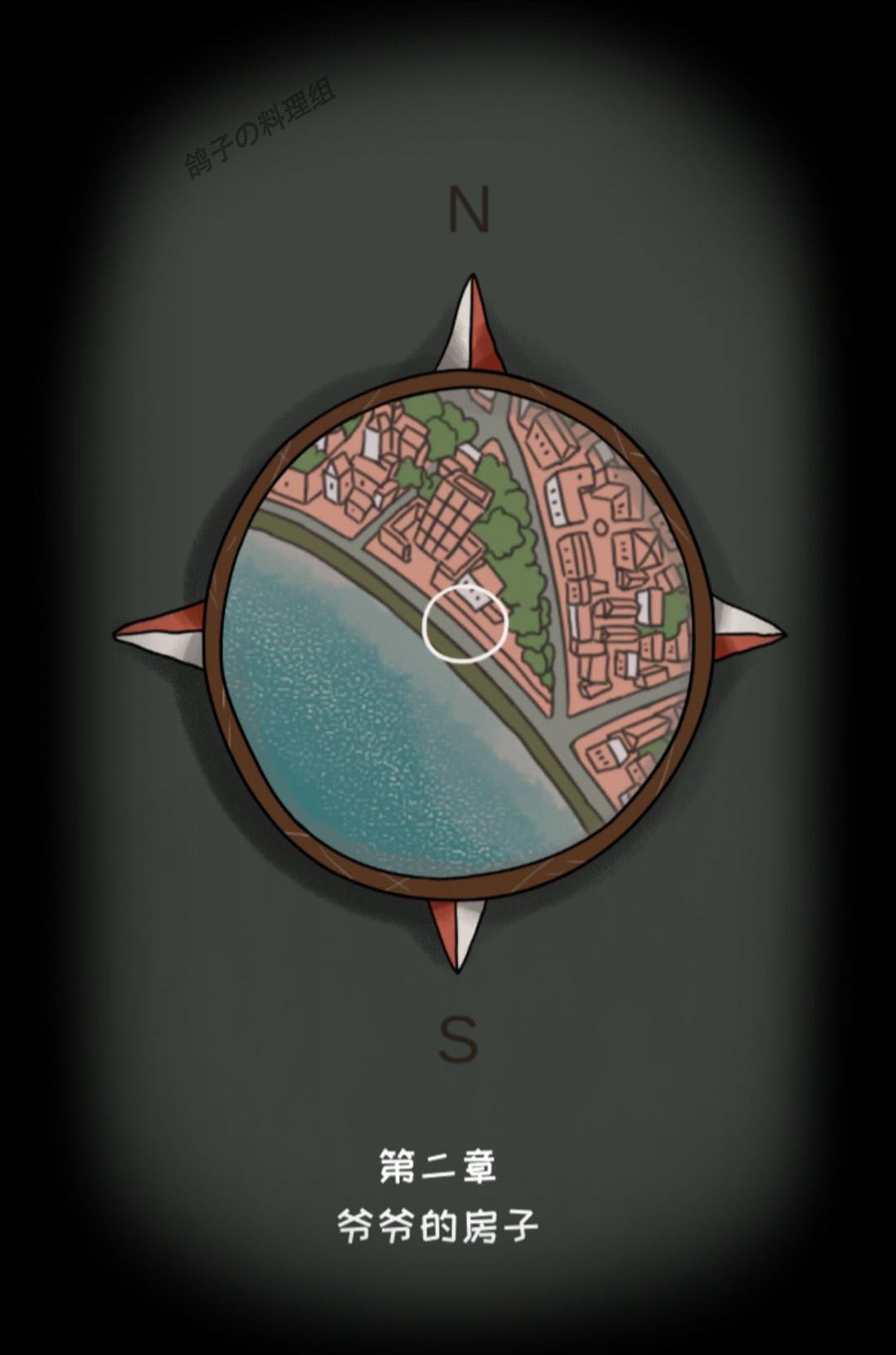 这里需要移动地图找到爷爷家的房子,就是有白鸟围绕的那栋房子,将它移到白圈内。