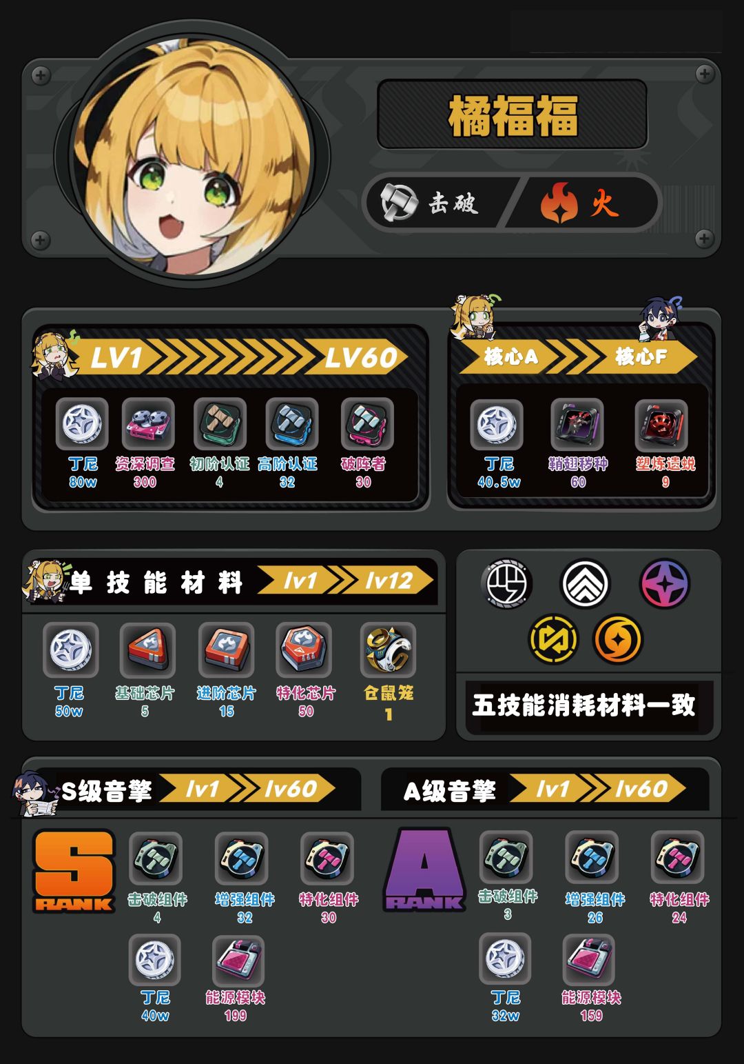 技能1-7级材料:基础引燃芯片*5、进阶引燃芯片*15、5万丁尼
