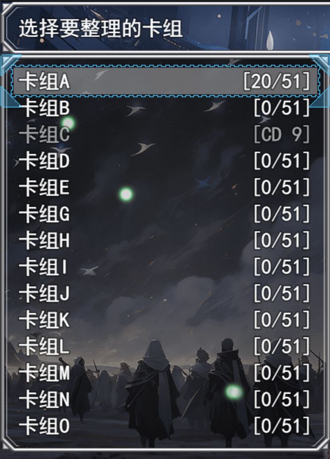• 选择卡组: