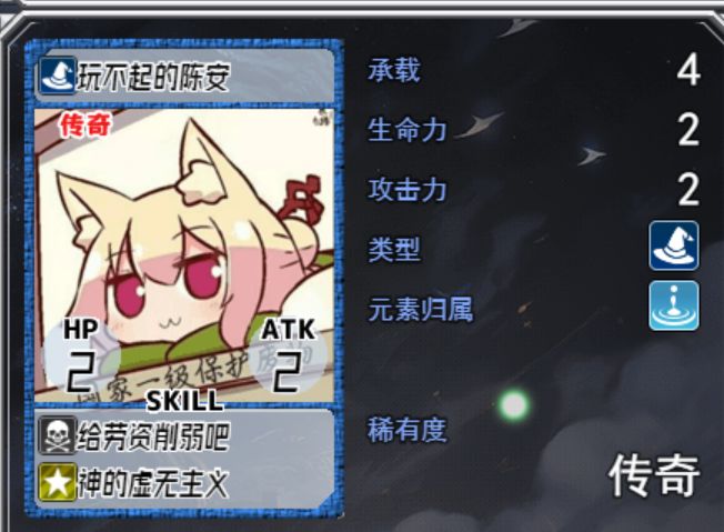 • 类型(Type):决定卡牌间的克制关系(战→技→魔→战)。