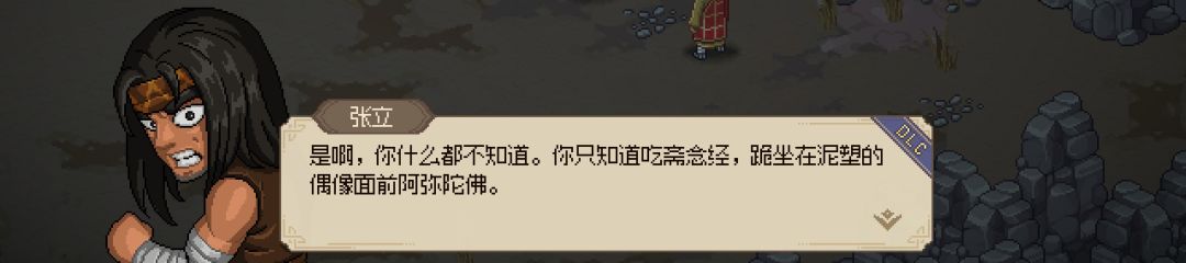 清风帮支线采用P5R式的开头吸引悬念,随着姐妹花由敌变友、朱文华严等人过往的揭晓,张立的人物弧光变化得以展现。虽然人设略显俗套,但张立的台词还是挺有血有肉,尤其是批老秃驴华严的时候——只知吃斋念佛,朝着泥塑阿弥陀佛。