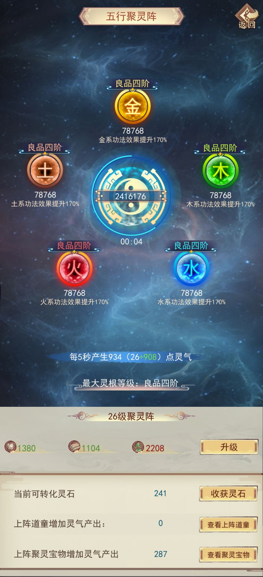 20:00开的练功房,用四品聚灵符,练功房其实可以再晚点儿开,我个人今天修为比同氪度运气好的晚近3个小境界,也有内修点太多的缘故