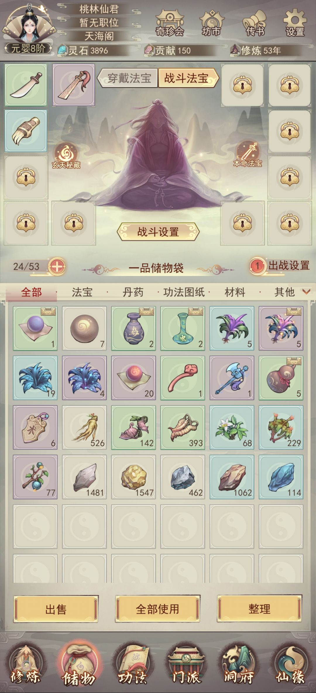 反思:第一玩328,加上太久没玩,灵石过多的用于抽玄功阁前3层攻诀真诀,醒悟时灵石不足1万,4层书抽少了,不然属性还有较大提升……