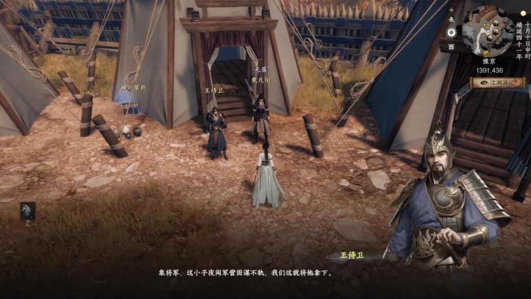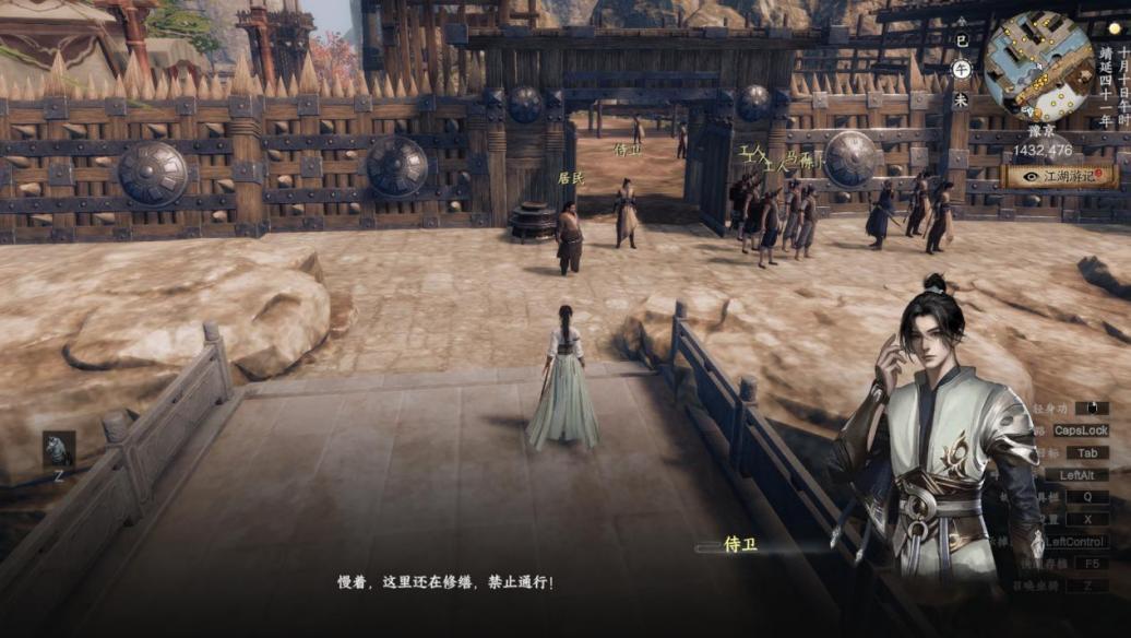 l 来到豫京城里面军营门口(1432.476) 自动触发剧情,击败侍卫