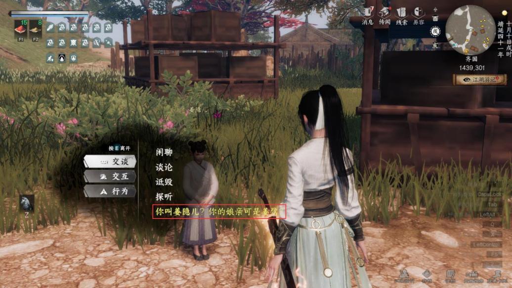 l 来到桃隐村(1439.301)对话(姜隐儿)触发剧情