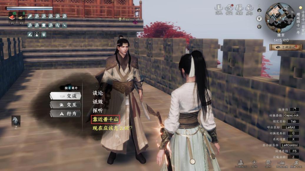 l 来到城墙上(1415.410)对话(普千山)靠近普千山