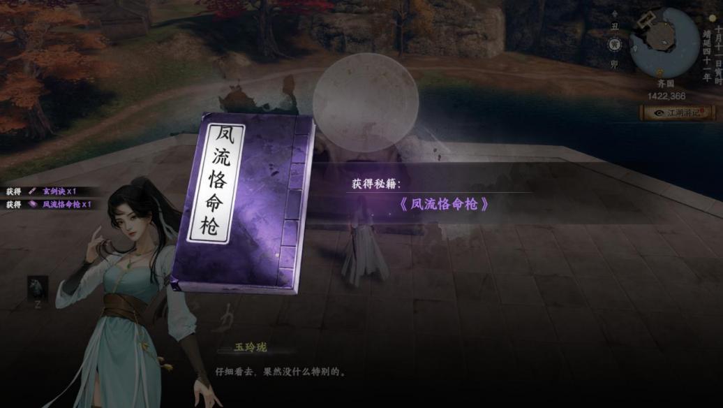 l 来到台上(1422.366)交互,获得(玄剑诀)和(风流恪命抢)