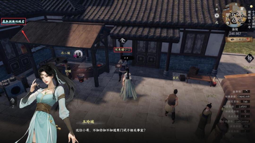 l 来到(246.667)对话悦来楼小二,获得线索