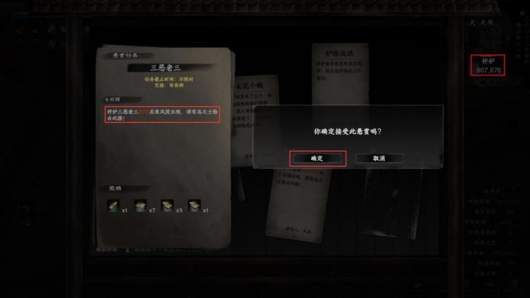 l 来到枰栌布告牌(907.876)接取(三恶老三)悬赏。