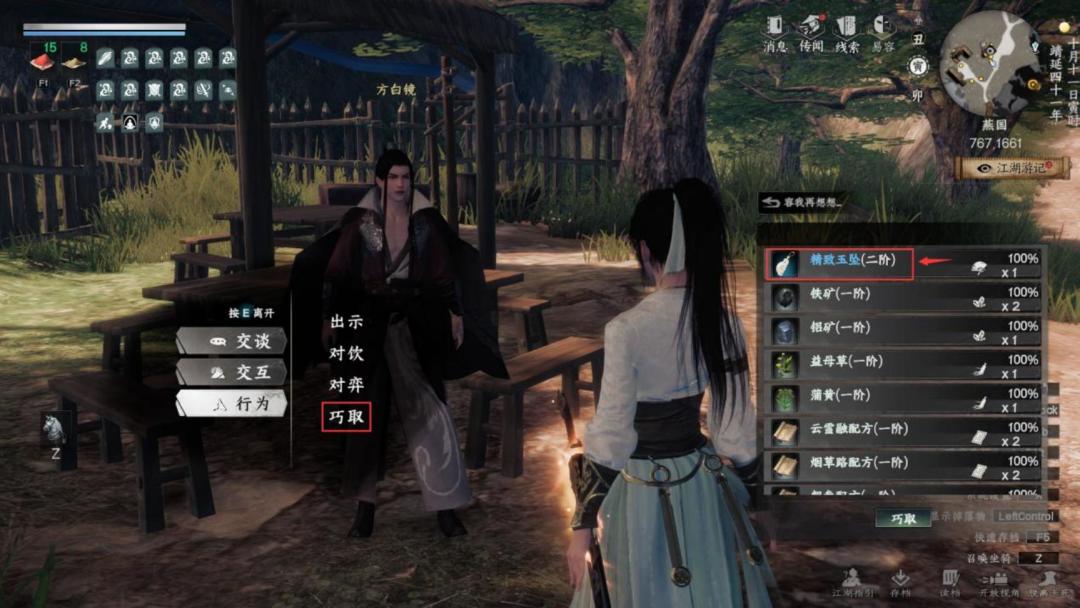 l 再到旁边(767.1661)巧取(方白镜)背包(精致玉坠)