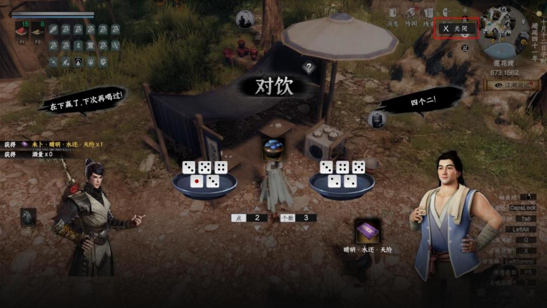 l 斗酒选项(乐意奉陪)斗酒界面右上面有个(关闭)按钮