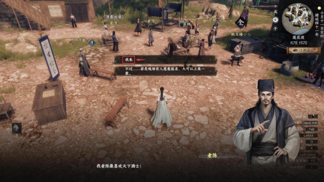 l 来到鸿月门(855.1575)对话(老王头)擂台赛的事情