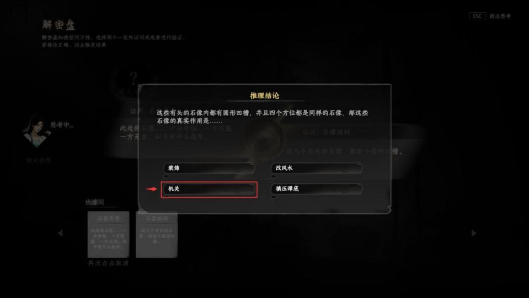l 需推理才能下一步推理(澄心石像)结论(机关)