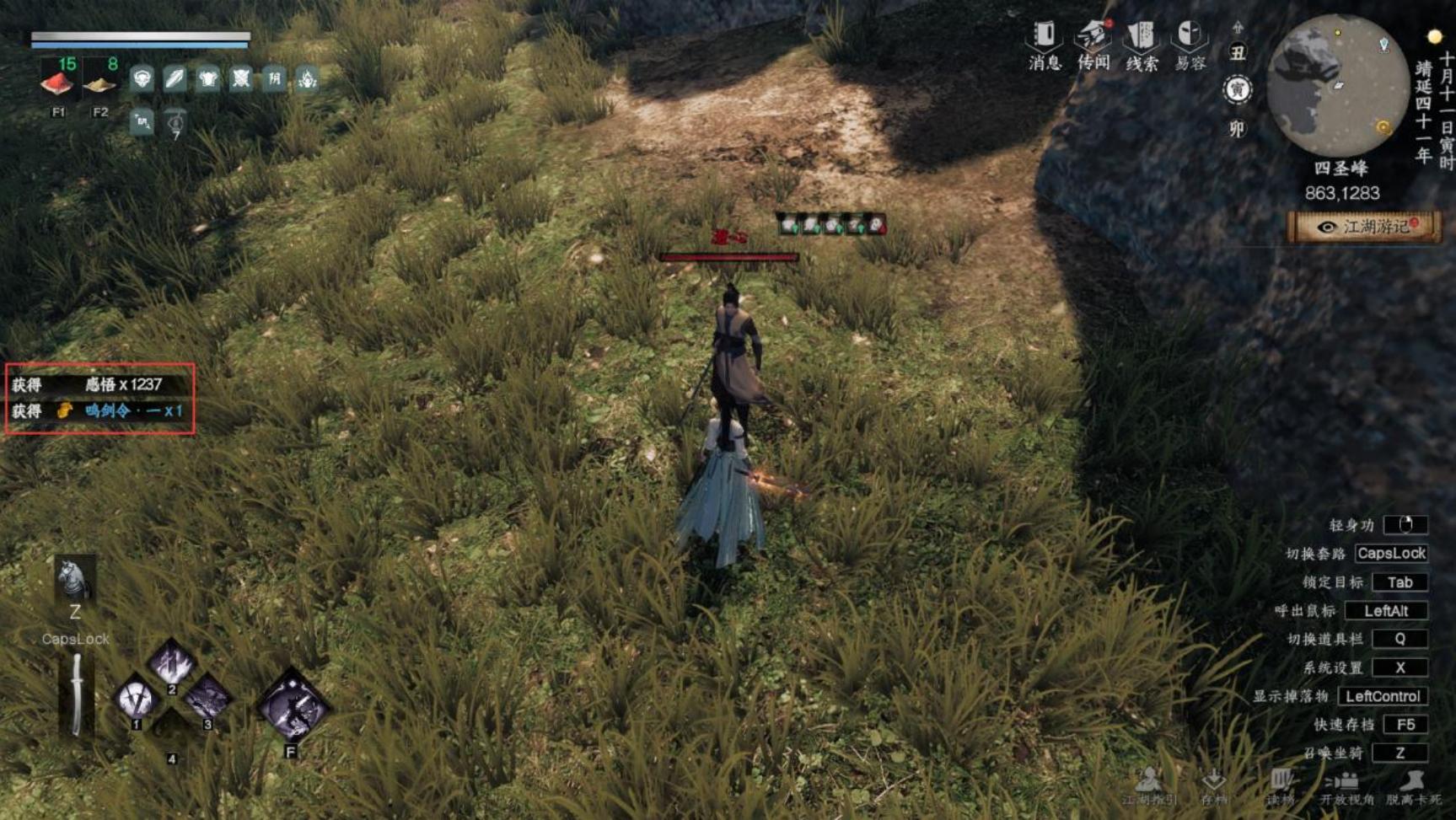 l 来到(863.1283)击败(澄心)获得鸣剑令一