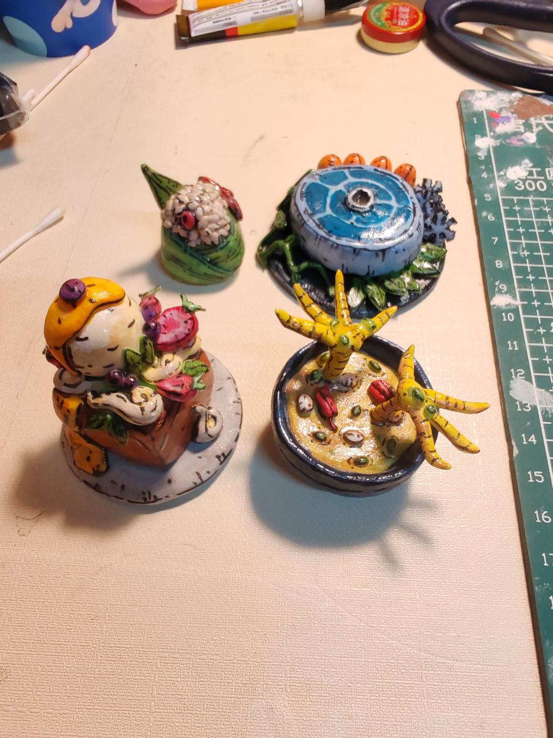 蜂蜜莓果厚多士的面包体做的有点太大了,但是整体来说还不错,此外,勾线真的还是要用樱花笔,做厚多士的时候用了一个小牌子的笔勾线,结果上亮油的时候都脏掉了🥲