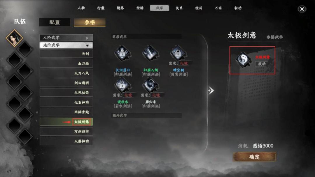 l 完成获得被动参悟武学,太极剑意