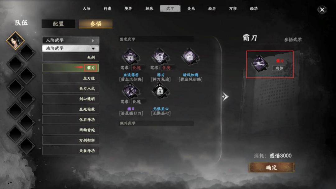 l 完成获得功体参悟武学,霸刀