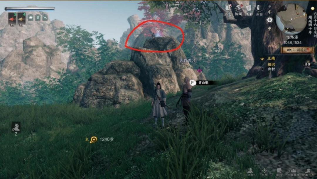 10.到旁边石头上找墨天明(1036.1540)下“围棋” ,一直 下到不能下,很简单自己玩,不会就多下几次。