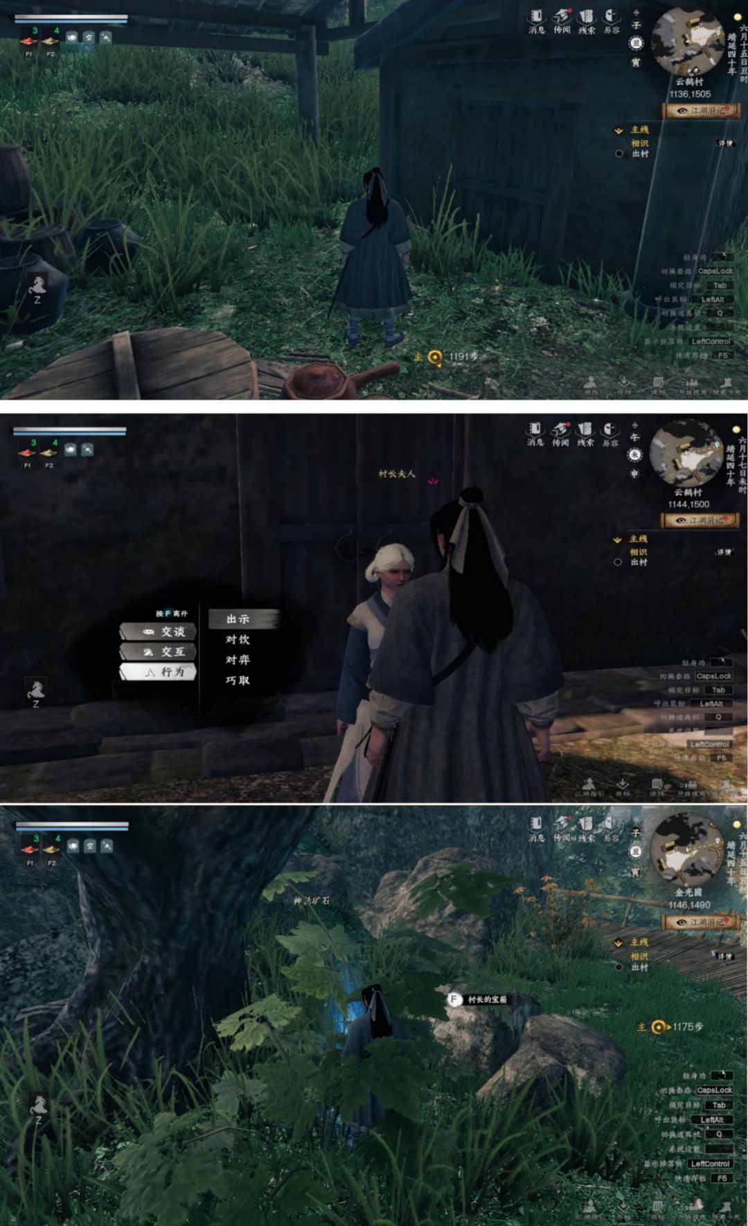 4.然后到云鹤村水缸这(1136.1504)互动,将物品出示给 旁边的村长夫人拿到钥匙(不是村长),到树下(1146.1490) 开箱子,拿到我们的启动资金。