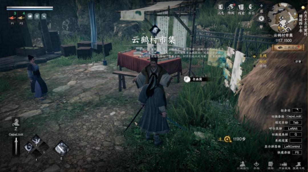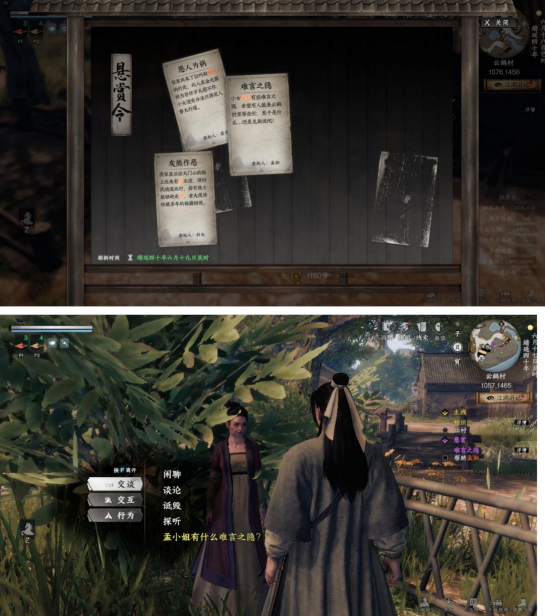 6.这里如果跟我一样主角选的寒门书生,那么我们将主线做 到出村后会送我们一本水上漂,如果选的其他主角我们需要 做一个悬赏,来到云鹤村布告栏(1076.1458)接取难言之