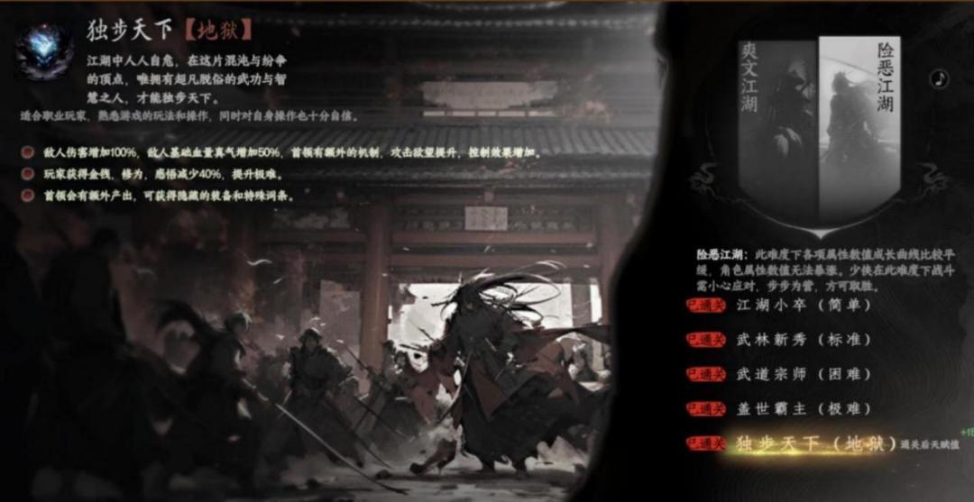 4. 进游戏选难度,新手玩家可以先选择爽文模式来熟悉游戏, 我们这里选择险恶江湖最高难度。