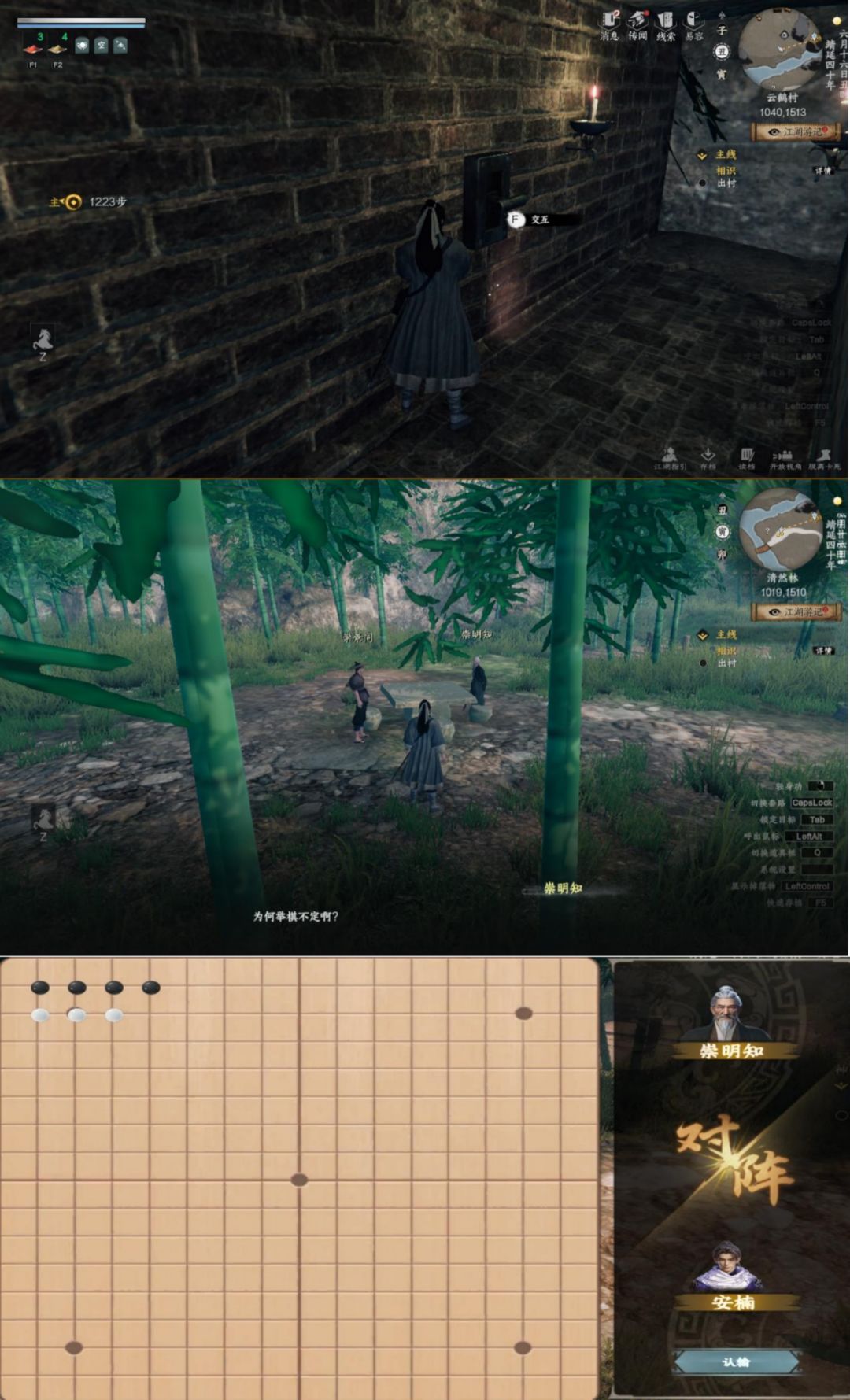8.全部探索完毕后就可以出去了,在坐标(1040.1513)交 互插入部件出井,跳出去后触发下棋奇遇选恭敬不如从命 (1019.1510),下棋(左上角第二排 12345 赢)。