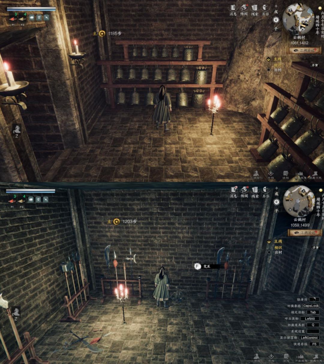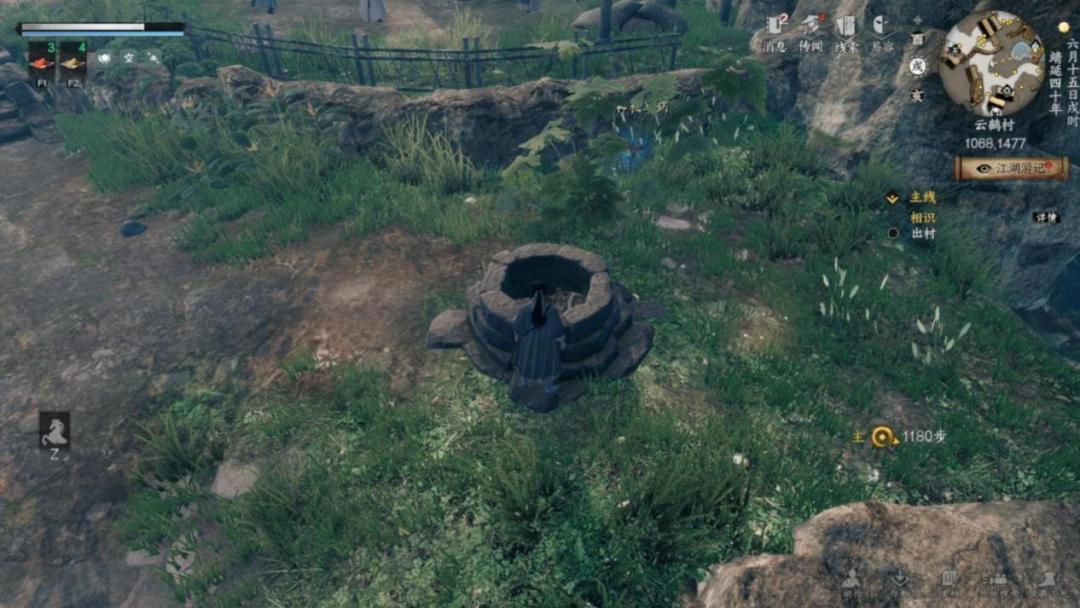 7.跳下云鹤村的井(1068.1477) , 自由探索能拿的全拿, 敲钟获取机关部件(角羽徽徽商宫),收殓尸骨获得尧光古 拳。